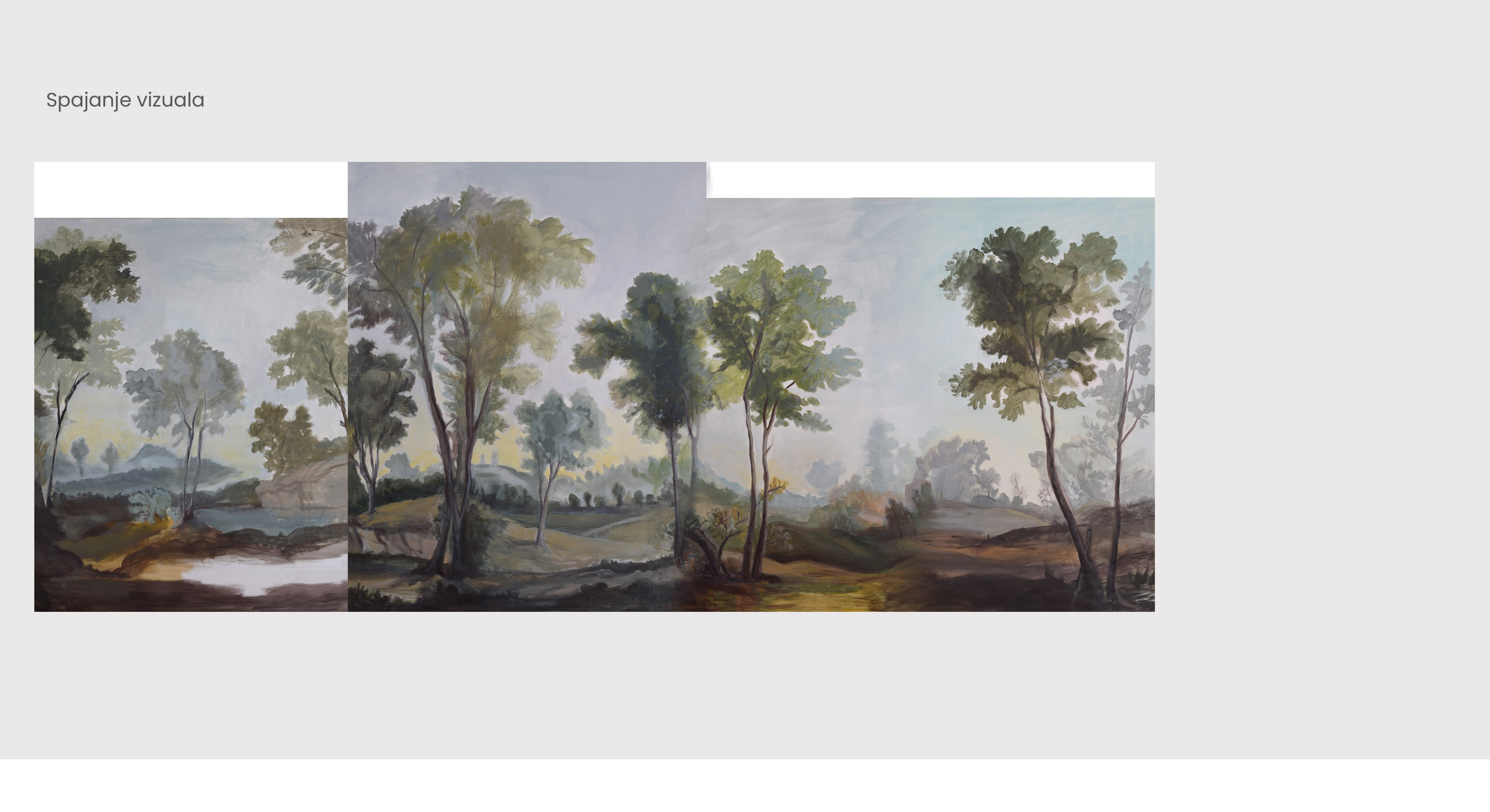 Zbog veličine zida, Đenana je podijelila ilustraciju na četiri odvojene slike. Svaka je bila pažljivo osmišljena kao dio većeg mozaika koji se kasnije morao spojiti u jednu koherentnu cjelinu. No, kako bi zadržala vrhunsku kvalitetu i razinu detalja, slikala je na više araka papira, koje je međusobno spajala pik trakom.