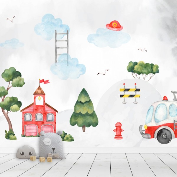 Tapete za dječju sobu - Dječja tapeta "Vatrogasci"
