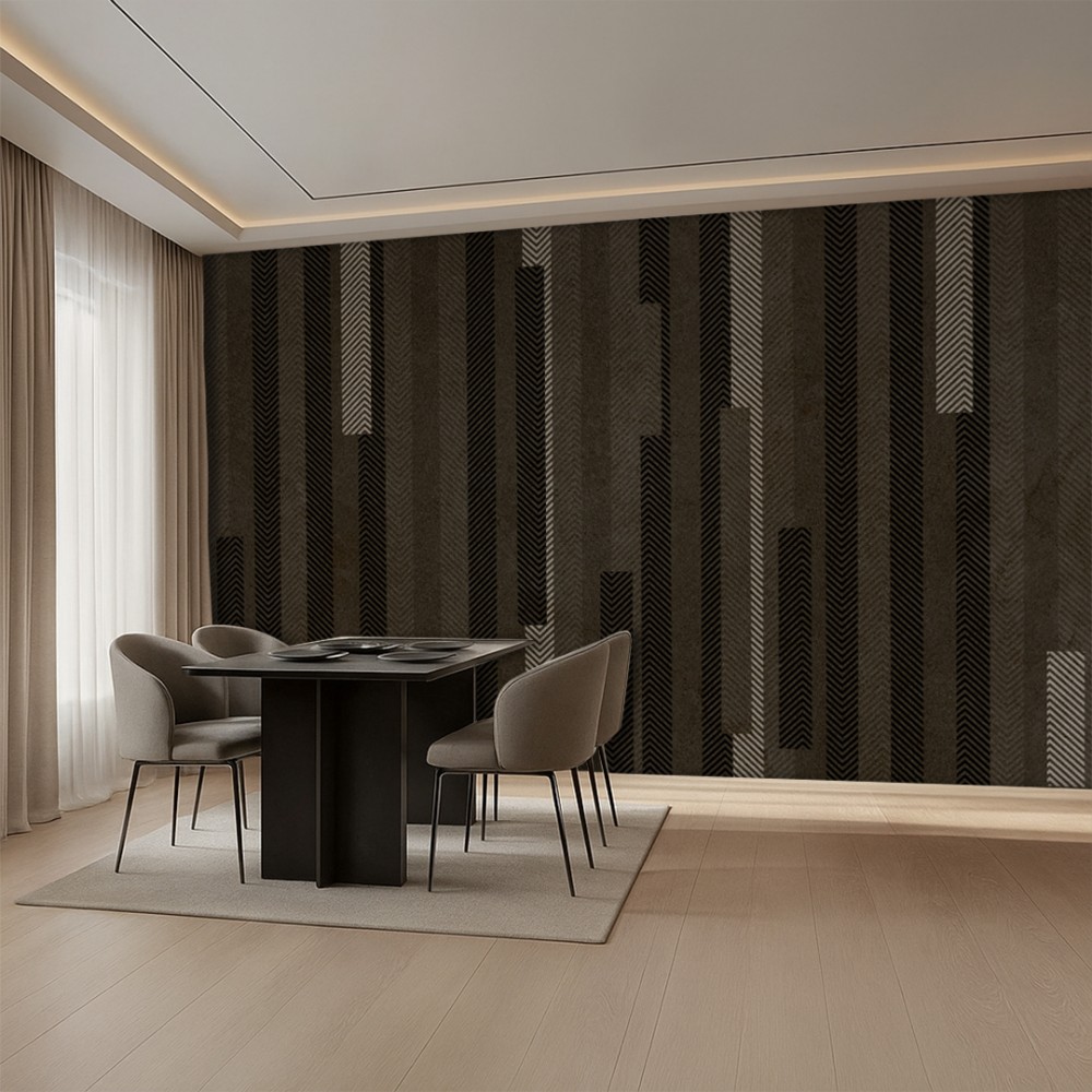 Nesamolepilne tapete, ki jih ponujamo, so od nizozemskega proizvajalca Desardi. Ta vrhunski material je prav tako požarno varen (ima certifikat B-s1,d0, testiran po metodi EN 13501-1), pralen (pri manjših umazanijah ga lahko obrišete z vlažno krpo) in z visoko odpornostjo proti obrabi. Za dodatno odpornost proti obrabi in pralnost priporočamo premazovanje z zaščitnim premazom. Tapeto namestite na steno s tapetnim lepilom po metodi "paste-the-wall" (tapetno lepilo se nanese neposredno na steno). Vsaka traka je široka približno 100–130 cm, odvisno od dimenzij stene.